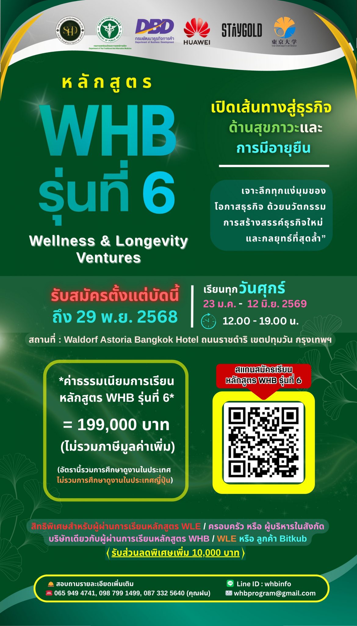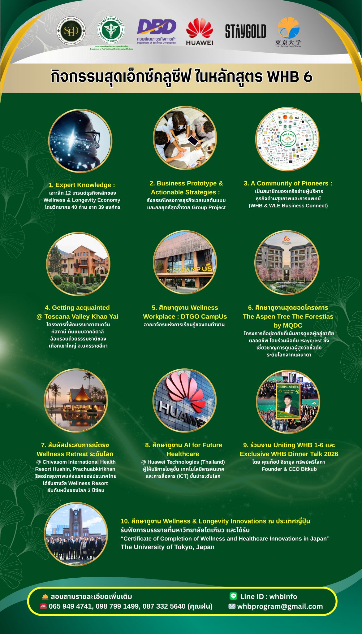 หลักสูตรโอกาสธุรกิจสุขภาพและการแพทย์สำหรับผู้บริหารระดับสูง – WHB รุ่นที่ 6 : Wellness & Longevity Ventures ขอแสดงความยินดีและขอต้อนรับทุกท่านสู่ครอบครัว “WHB”